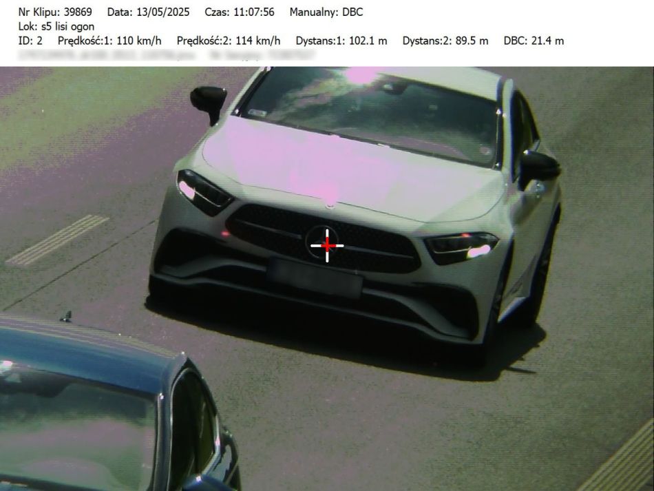Mundurowi z bydgoskiego ruchu drogowego, wykorzystując urządzenie do pomiaru prędkości i przepisowego odstępu między pojazdami, kontrolowali czy kierowcy stosują się do przepisu zachowania wymaganej odległości na odcinku drogi ekspresowej S-5.