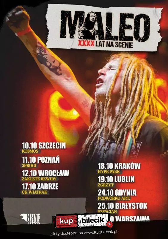 | Dariusz "Maleo" Malejonek + Kuba Leciejdodano 2025-08-19 11:14:56 Maleo akustycznie - 40 lecie w Bydgoszczy! Data: 5.12.2025 Dariusz Maleo Malejonek artyści: Dariusz MalejonekDariusz Maleo Malejonek. Prawdziwa legenda polskiej sceny muzycznej. Czas podsumować 40 lat na scenie. Podczas tego jubileuszu będzie przekrój utworów jakie artysta prezentował w wielu wspaniałych zespołach. Piosenki Kultury, Izraela, Houk, 2TM23, Moskwa, czy Maleo Reggae Rockers podbijały serca fanów, a teraz będzie okazja wszystkich najważniejszych posłuchać na jednym koncercie. Podczas przygody artystycznej Dariusz pracował z wieloma fantastycznymi muzykami, jakimi jak Robert Brylewski, Robert Litza, Tomasz Budzński, Kelner, i wielu wielu innych. Utwory taki jak "Płonie Babilon", „Wolny naród” ,"See I&I", "Transmission Into Your Heart", "Żyję w tym mieście", do dziś rozpalają ogień w sercach fanów. Będzie to wspaniała przygoda muzyczna przepełniona wzruszeniami oraz cudownymi dźwiękami. Muzyka regge, rock, czy nawet mocny metal czeka na fanów. Bilety do nabycia na: KupBilecik.pl |