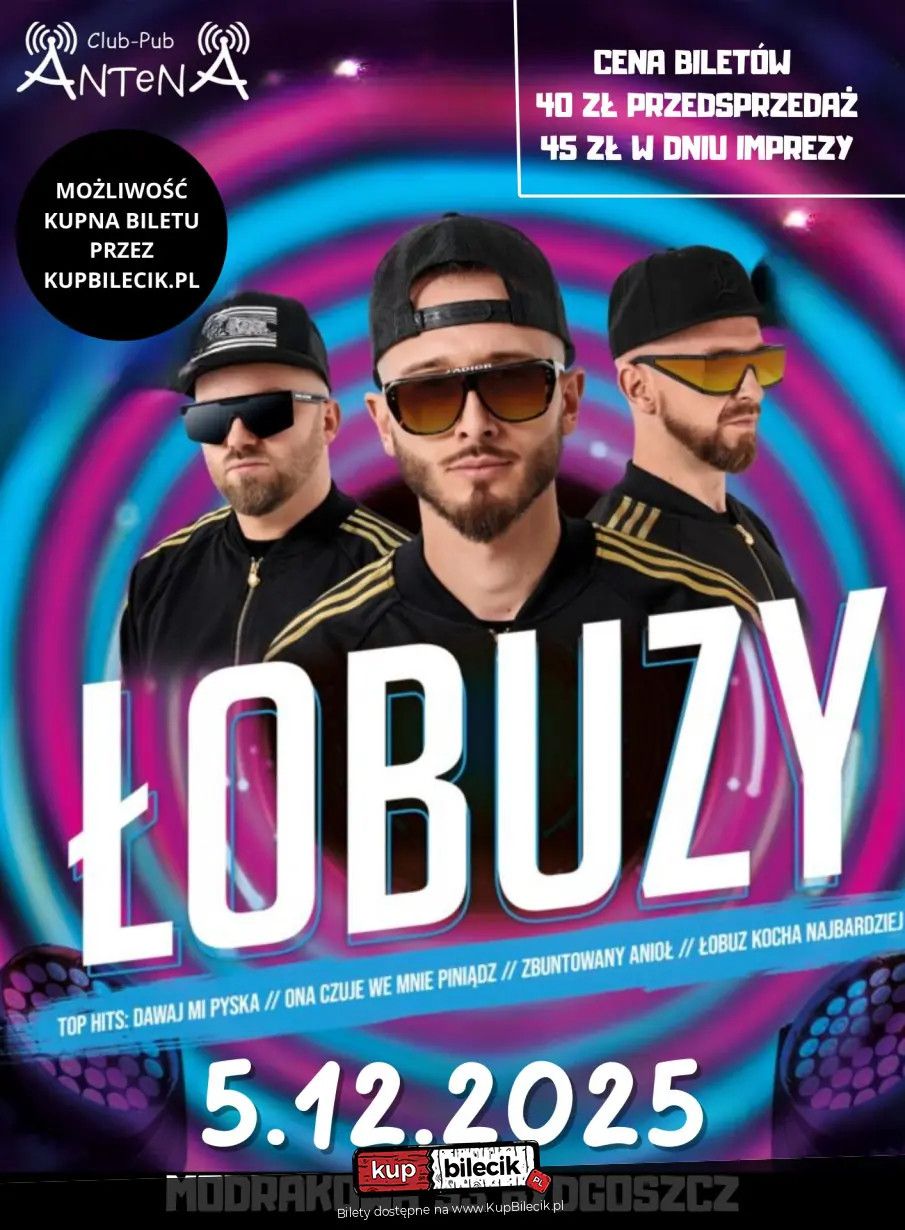 | KONCERT/ŁOBUZY/ANTENA CLUBdodano 2025-09-09 11:15:13 Mamy przyjemność zaprosić Was na koncert zespołu "Łobuzy", który odbędzie się 5.12.2025 (piątek) w Antena Club. Łobuzy artyści: Discomił, DJ Yalla, DJ YoloŁobuzy to projekt, który od samego początku wstrząsnął polską sceną muzyczną. W niespełna 2 lata, od daty premiery ich debiutanckiego singla "Ona czuje we mnie piniądz", który pokrył się Diamentową Płytą, zespół podbił serca milinów fanów, a na swoim koncie zgromadził ponad 120 000 000 wyświetleń! Od tamtego czasu Łobuzy nie zwalniają tempa i nie przestają zaskakiwać! HITy takie jak: "Dla Ciebie kupie se spodnie", "Łobuz kocha najbardziej", "Pupy" czy najnowsza propozycja Chłopaków - "Oczy jak pińć złoty" tygodniami królują na szczytach list przebojów i porywają do tańca najtwardszych. Łobuzy to propozycja nie tylko dla fanów disco-polo, ale dla wszystkich tych, którzy kochają muzykę, szczególnie tę, na żywo. Zespół składa się z 3 członków: Discomiła, Fifona i Jabba Drummera. Ich koncerty to nie tylko świetna zabawa (niezwykły kontakt z publicznością, konkursy z nagrodami), ale przede wszystkim popis umiejętności muzycznych. Podczas występu usłyszymy na żywo perkusję, gitary i anielski głos lidera. Panów poznacie po wizerunku scenicznym - ciemne okulary, dresy z trzema paskami i najwyższa jakość muzyki to ich znaki rozpoznawcze. Niech Łobuz będzie z Wami! Bilety do nabycia na: KupBilecik.pl |