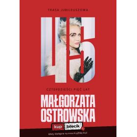 bilety: 45 lat na scenie - i wciąż z tą samą rockową energią! Małgorzata Ostrowska w 2026 roku rusza w jubileuszową trasę koncertową, by znów porwać publiczność swoim niepowtarzalnym głosem i charyzmą. Legenda polskiej muzyki wyrusza w podróż, by wspólnie z publicznością świętować 45-lecie swojej niezwykłej kariery! Małgorzata Ostrowska - charyzmatyczna wokalistka, jedna z największych ikon polskiego rocka - zaprasza na wyjątkowe koncerty pełne emocji, wspomnień i energii, która od lat niezmiennie porusza serca fanów. Ponad cztery dekady niezapomnianych hitów - Podczas jubileuszowej trasy usłyszymy największe przeboje artystki: "Meluzynę", "Szklaną pogodę", "Mam dość", "Gołębi puch", "Taniec pingwina na szkle", "Mister of America" i wiele innych utworów, które stały się soundtrackiem życia kilku pokoleń słuchaczy. To muzyczna podróż przez wszystkie etapy kariery Małgorzaty Ostrowskiej - od drapieżnych i barwnych lat 80., przez dojrzałe lata solowej twórczości, aż po najnowsze dokonania z doskonale przyjętej płyty "Legenda", będącej powrotem do jej rockowych korzeni. Z pewnością nie zabraknie wspomnień i anegdot. Nie przegap spotkania z prawdziwą legendą polskiej sceny! Bilety do nabycia na: KupBilecik.plMałgorzata Ostrowska artyści: Małgorzata OstrowskaMałgorzata Ostrowska jest niekwestionowaną ikoną polskiego rocka lat 80"tych. Popularność zdobyła jako wokalistka zespołu Lombard, z którym zagrała ponad tysiąc trzysta koncertów w całej Polsce i poza granicami kraju (w USA, RFN, ZSRR, Holandii, Czechosłowacji, Szwecji, dawnej Jugosławii, Iraku, na Węgrzech i we Włoszech), nagrała dziesięć płyt, z których trzy uzyskały status "Złotej Płyty", a także wylansowała kilkanaście przebojów (takich jak m.in. "Szklana pogoda", "Droga Pani Telewizji", "Taniec pingwina na szkle", "Mister of America", "Znowu radio", "Mam dość" czy "Meluzyna"). Koncerty jazzowe na Festiwalu "Jazz Jamboree", rola Królowej Aby w filmie "Podróże Pana Kleksa", rola Marii Magdaleny w polskiej wersji rock-opery "Jesus Christ Superstar" z 1987 roku, a później tytułowa rola w musicalu "Pocałunek Kobiety-Pająka" to kolejne etapy kariery, które uczyniły z niej niezwykle intrygującą, nieszablonową artystkę estradową. Bilety do nabycia na: KupBilecik.pl |
