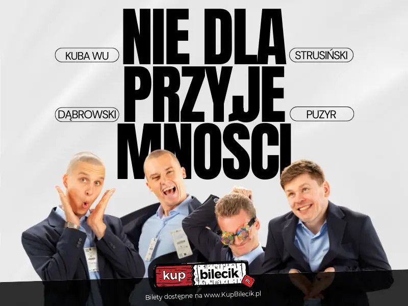 bilety: Po SPEKTAKULARNYM sukcesie pierwszego odcinka, wracamy z kolejną odsłoną serii. "Nie dla przyjemności" to dwie godziny luźnej gadki, opartej o bieżące wydarzenia, zaskakujące informacje i zbędne fakty, które zaśmiecą Wam głowy na co najmniej tak długo, jak długo trwa trzeci trymestr ciąży samicy walenia. Co ciekawe trwa tyle samo co pierwszy i nie różni się długością od ludzkiego. Na ekranie (telewizora) zobaczycie materiały poglądowe, które w MISTRZOWSKI sposób skomentują WSPANIALI komicy - Kuba Dąbrowski, Bartek Strusiński, Kuba Wu i Filip Puzyr. Bilety do nabycia na: KupBilecik.plStand-up: Nie dla przyjemności artyści: Kuba Dąbrowski, Bartek Strusiński, Kuba Wu, Filip PuzyrOstatnimi czasy polski stand-up płynie na fali nowych formatów komediowych taki jak "Masz minutę", "Roast me", czy "Litości". Surferskie życie nie jest nam obce, więc płyniemy i my. "Nie dla przyjemności" to dwie godziny luźnej gadki, opartej o bieżące wydarzenia, zaskakujące informacje i zbędne fakty, które zaśmiecą Wam głowy na co najmniej tak długo, jak długo trwa trzeci trymestr ciąży samicy walenia. Co ciekawe trwa tyle samo co pierwszy i nie różni się długością od ludzkiego. Bilety do nabycia na: KupBilecik.pl |