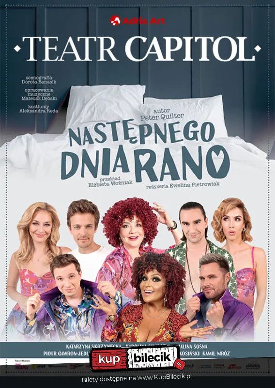 | Następnego dnia ranododano 2026-04-02 19:14:38 Zdarzyło się Wam obudzić rano w cudzym łóżku obok nieznajomej czy nieznajomego i nie pamiętać, co się działo poprzedniego wieczoru? Nie? Szczerze? A co zrobilibyście wtedy? Pewnie próbowalibyście jak najszybciej wyjść z tej krępującej sytuacji i najlepiej bezszelestnie zniknąć na zawsze. Ale nie tym razem! Kelly i Thomas następnego dnia rano budzą się wprawdzie zdumieni, ale on wcale nie zamierza ulotnić się po cichu. Przeciwnie - zostaje… z nią? Niezupełnie. Po chwili do ich wspólnego łóżka dołączają ekscentryczni członkowie rodzinki Kelly… Czy przygoda na jedną noc naprawdę może zakończyć się ślubem? Następnego dnia rano wszystko jest możliwe. Następnego dnia rano artyści: Katarzyna Skrzynecka, Michalina Sosna / Karolina Piwosz i inniZdarzyło się Wam obudzić rano w cudzym łóżku obok nieznajomej czy nieznajomego i nie pamiętać, co się działo poprzedniego wieczoru Nie Szczerze A co zrobilibyście wtedy Pewnie próbowalibyście jak najszybciej wyjść z tej krępującej sytuacji i najlepiej bezszelestnie zniknąć na zawsze. Ale nie tym razem! Kelly i Thomas następnego dnia rano budzą się wprawdzie zdumieni, ale on wcale nie zamierza ulotnić się po cichu. Przeciwnie - zostaje... z nią Niezupełnie. Po chwili do ich wspólnego łóżka dołączają ekscentryczni członkowie rodzinki Kelly... Czy przygoda na jedną noc naprawdę może zakończyć się ślubem Następnego dnia rano wszystko jest możliwe. Bilety do nabycia na: KupBilecik.pl |
